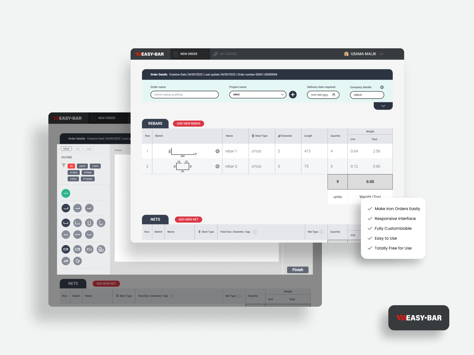 Easybar serves as a marketplace that allows buyers to design and place orders for iron bars, while suppliers receive and print these orders for their automated machines.